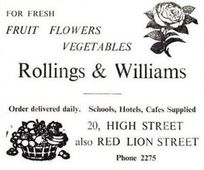 It is believed that Jack Rollings who lived on Priory Terrace in the 1950s ran the High Street shop but around 1960 the High Street shop went under the name W A Williams and the Red Lion Street shop under the name Rollings. Both were greengrocers.